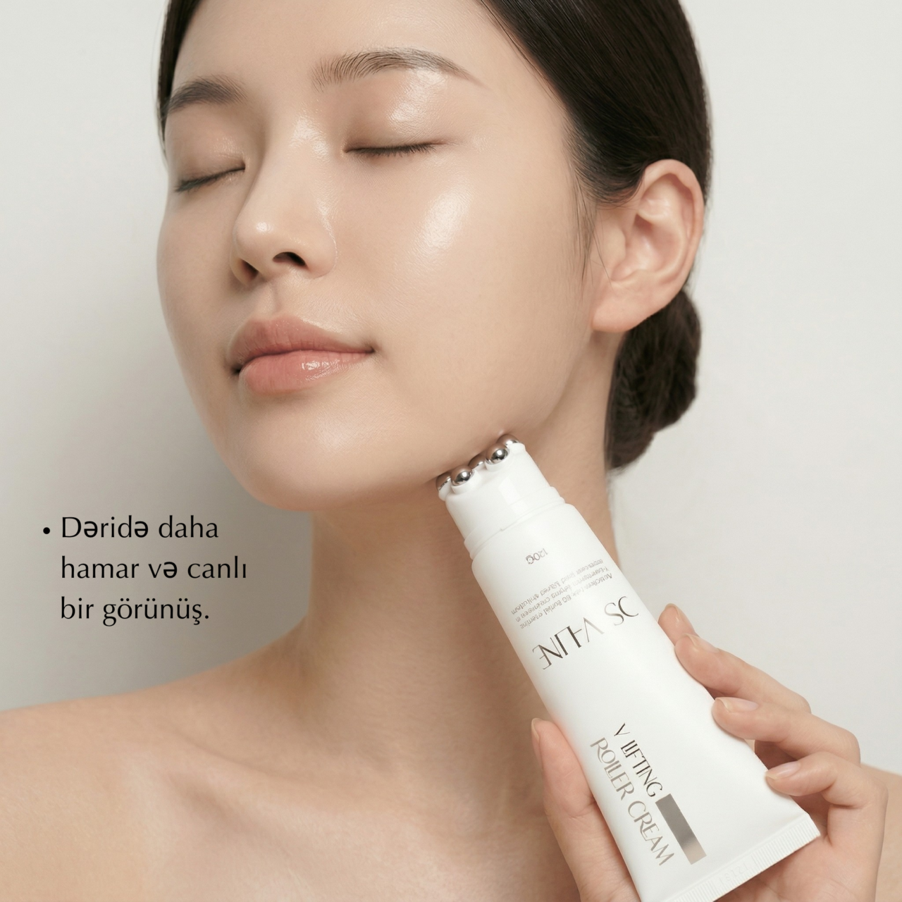 Qizlar bu roler kremi heqiqeten eladi. Masaj basligi sayesinde cene xettim bir az dartildi sanki, o V-line effekti yavas-yavas hiss olunur. Hemde uzumde yapisqanliq hissi qamir, tez hopur. Icindeki 3 nov kolagen ve hialuron tursusu derini cox yaxsı nemlendirir. Birde kivi ve ananas ekstratlarile derim resmen isıqlanıb. Her seher masaj ederek cekirem, cox rahatdi