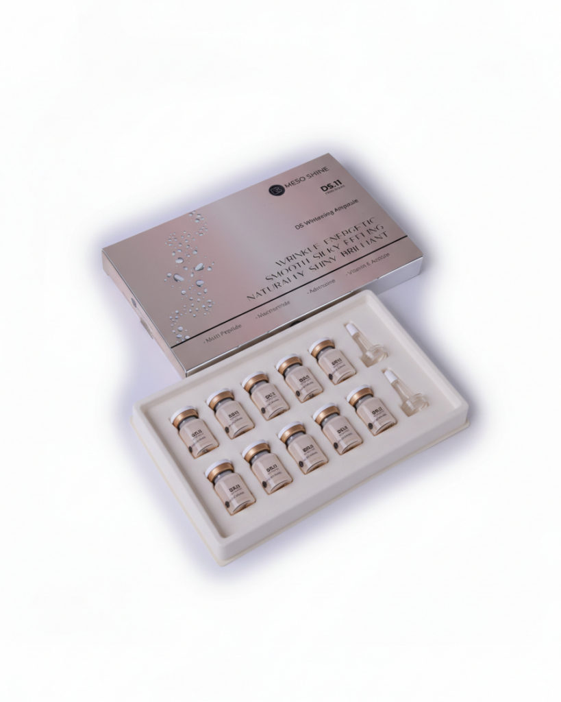 DS Meso Shine — это инновационный продукт для мезотерапии, который можно использовать с микроигольчатой ручкой или без нее. Это отбеливающее средство, специально разработанное для осветления и оживления кожи. Формула содержит 11 мощных пептидов и 7 растительных ингредиентов, которые синергически восстанавливают и защищают кожу. Пептиды играют важную роль и особенно эффективны в процедурах по предотвращению и омоложению старения. Этот продукт идеально подходит для тех, кто ищет эффективное решение для улучшения внешнего вида кожи и одновременно предотвращения признаков старения.