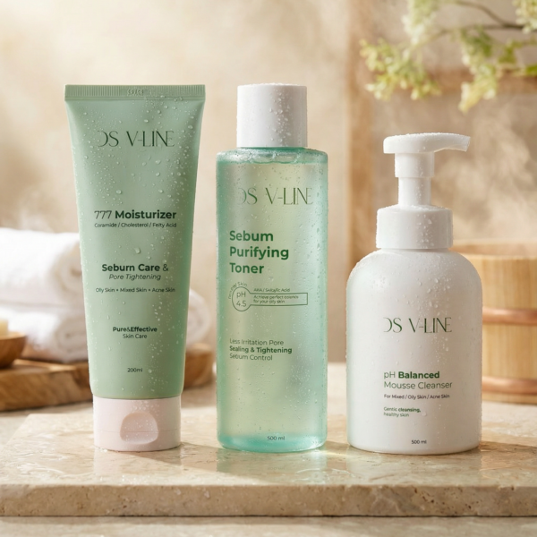 Qarışıq, yağlı və akneli dərilər üçün özəl DS V-LINE 3-lü Baxım Seti! pH balanslı köpüklə dərinizi zərifcə təmizləyin, AHA və Salisilik turşulu toniklə məsamələri sıxılaşdırın. Seramid dəstəkli nəmləndirici ilə sebum balansını qoruyun. Sağlam dəri üçün ideal rutininiz!